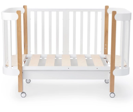 Детские кроватки детально продумали. У дна — до шести положений, боковая стенка опускается или снимается в зависимости от возраста ребенка, на верхних планках могут быть силиконовые накладки. Расстояние между рейками не превышает 10 см: этого достаточно, чтобы ребенок не смог просунуть голову, повредить руки, ноги. У моделей с маятниковым механизмом есть фиксаторы: можно качать ребенка или сделать кроватку неподвижной. У колес также есть блокираторы. Кровати разные по форме: прямоугольные, овальные. Можно заказать трансформеры, модель с люлькой или комплектом для расширения. Если важна мобильность мебели, выбирайте модели с колесиками или которые складываются по принципу книжки. Если площадь комнаты небольшая, нужны дополнительные места для хранения, заказывайте кровати с выдвижными ящиками.